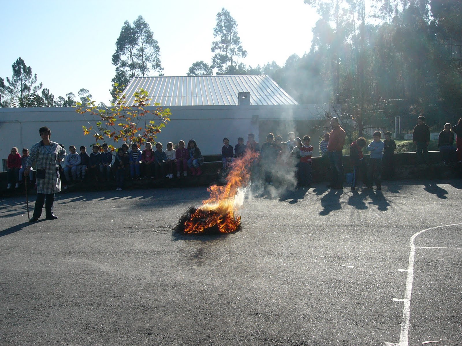 ram algumas castanhas e todos se divertiram a saltar!... Nesta atividade tivemos a colaboração do professor de atividade física desportiva, das AEC, que com a ajuda dos alunos conseguiu arranjar moliço e pequenos paus, na mata da escola, para realizarmos esta fogueira.