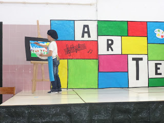 Realizamos um painel coletivo com a colaboração de todas as salas da escola, para servir de cenário na festa de encerramento do ano letivo 2014-15.