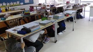 No passado dia 13 de outubro pelas 10h13m houve um sismo imaginário de um minuto, em Portugal. Assim, na nossa escola fizemos esse exercício praticando os três gestos básicos de proteção em caso de sismo real: BAIXAR, PROTEGER e AGUARDAR. Quase pareceu um jogo para os mais pequeninos mas, sem duvida, foi um alerta e uma preparação para situações que podem ser reais, em que é necessário agir corretamente.